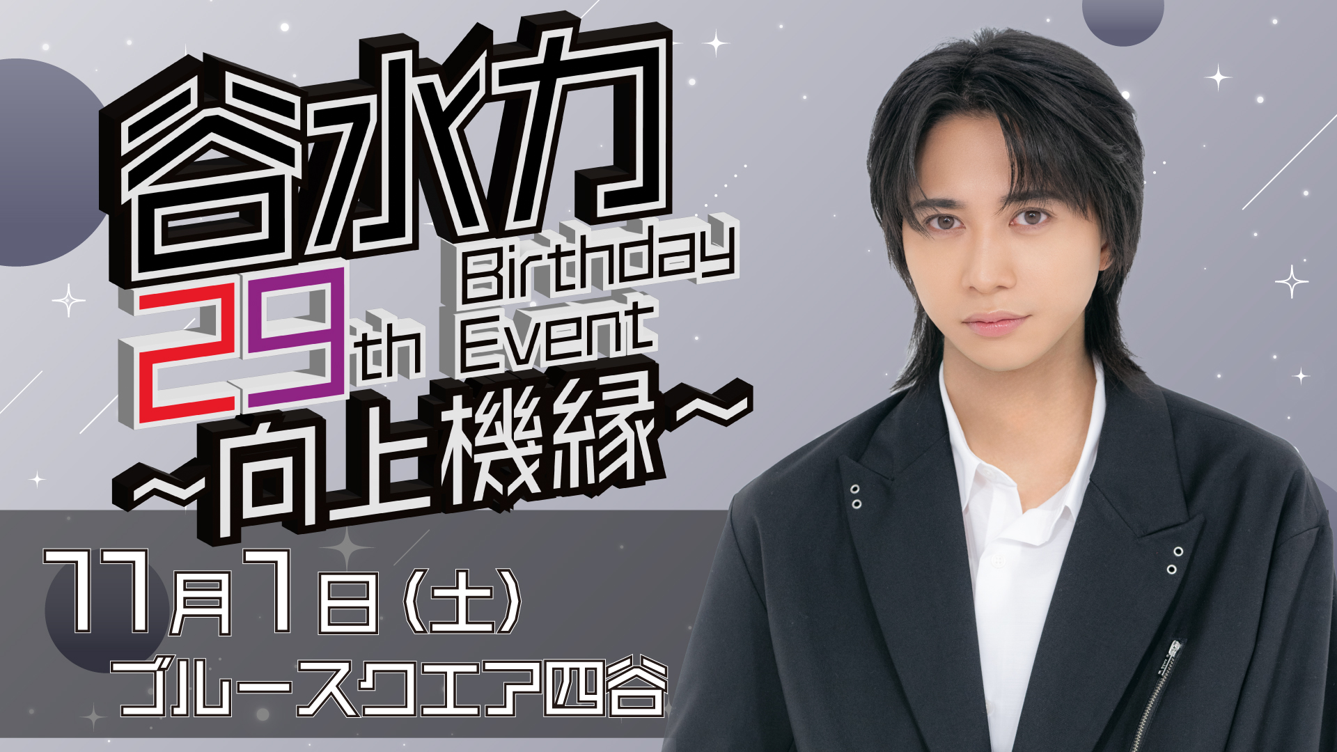 谷水力 29th Birthday Event ~向上機縁~ 11/1開催決定! 2025年10月2日 最終更新日時 : 2025年10月2日 admin_sunbrain ◆日程 11月1日(土) ◆会場 ブルースクエア四谷 詳しくは、こちら
